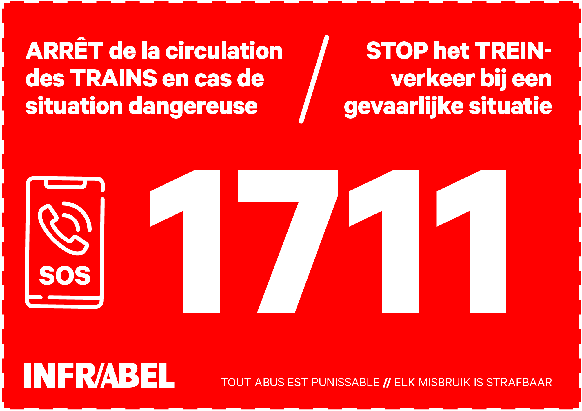 Dreigt een boom op de sporen te vallen? Bel dan onmiddellijk 1711 om het treinverkeer te stoppen. Let op: dit nummer is enkel voor noodgevallen.