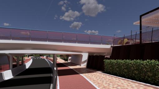 De wegtunnel bestaat uit twee rijvakken voor gemotoriseerd verkeer met aan weerszijden een verhoogd fietspad. Aan de kant van het station is een voetpad voorzien dat ook dienst zal doen als onderdoorgang om de 2 perrons van het station te verbinden.